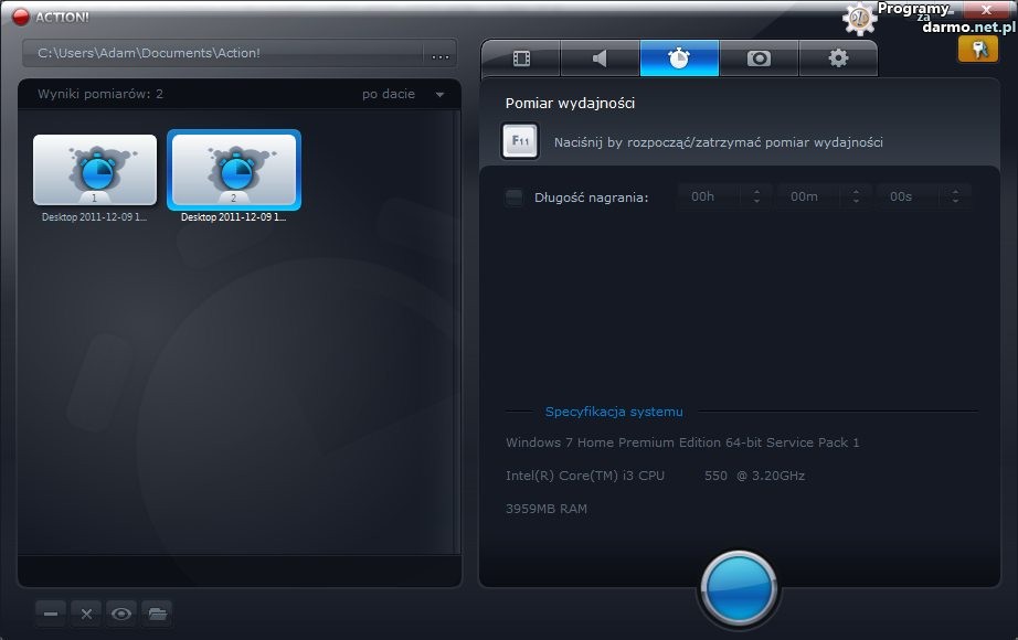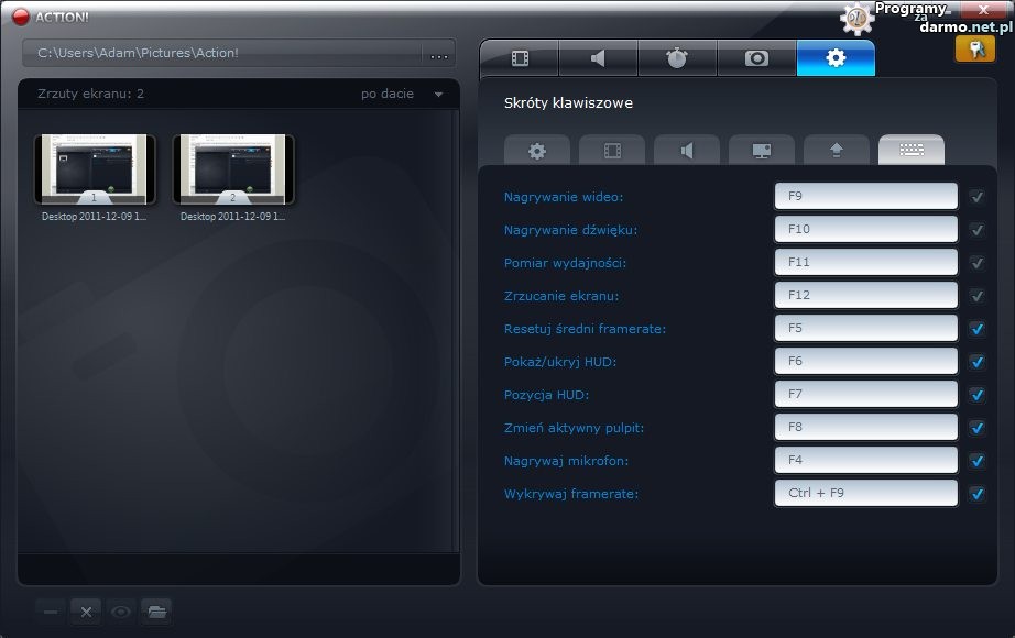 Action! – to nowe, bardzo rozbudowane a zarazem proste w obsłudze narzędzie  które umożliwia nagrywanie w czasie rzeczywistym/przechwytywanie wszystkiego co dzieje się na ekranie twojego  monitora (pulpit z Windows Aero) w doskonałej jakości HD. Dzięki  Action! można nagrywać filmy z odtwarzaczy zamieszczonych na stronach internetowych, gry w które gramy, wyświetlać ilość klatek na sekundę w grach, dodać komentarz ( audio ) na żywo do nagrań, tworzyć wysokiej jakości samouczki, poradniki, nagrywać muzykę, tworzyć zrzuty ekranu i wiele więcej!