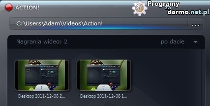 Tutaj podana jest lokalizacja  dla plików audio, wideo i screenów (zrzutów ekranu) utworzonych za pomocą programu Action!. Adres jest zmienny w zależności od tego czy nagrywamy wideo, audio czy tworzymy zrzutu ekranu.