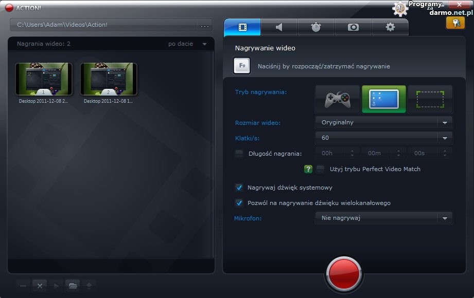 Action! – to nowe, bardzo rozbudowane a zarazem proste w obsłudze narzędzie które umożliwia nagrywanie w czasie rzeczywistym/przechwytywanie wszystkiego co dzieje się na ekranie twojego monitora (pulpit z Windows Aero) w doskonałej jakości HD. Dzięki Action! można nagrywać filmy z odtwarzaczy zamieszczonych na stronach internetowych, gry w które gramy, wyświetlać ilość klatek na sekundę w grach, dodać komentarz ( audio ) na żywo do nagrań, tworzyć wysokiej jakości samouczki, poradniki, nagrywać muzykę, tworzyć zrzuty ekranu i wiele więcej!