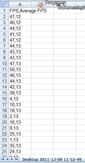 Zarejestrowane dane Liczba klatek na sekundę, średnia z całości