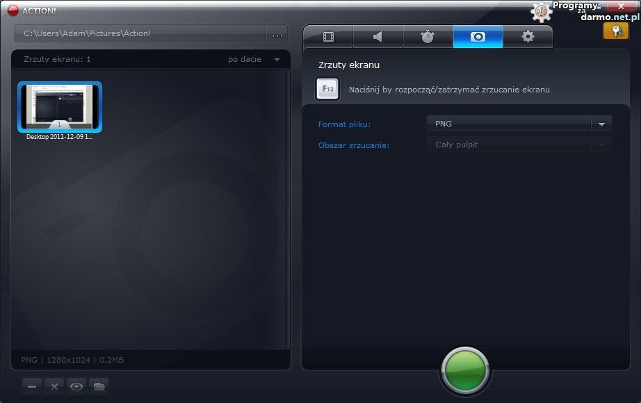 Dzięki Action! można łatwo i szybko utworzyć zrzuty ekranu ( screenshoty ) z gier, programów i wszystkiego co dzieje się na ekranie twojego monitora. Wystarczy nacisnąć odpowiedni klawisz a zrzut ekranu zostanie automatycznie zapisany do pliku na dysku twardym twojego komputera, bez przerywania pracy lub gry.