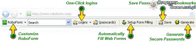 RoboForm może dodać pasek narzędzi do IE, co sprawia, że kontrolowanie jest naprawdę proste, przy zajmowanym minimalnym obszarze obrazu wyświetlanego na monitorze.