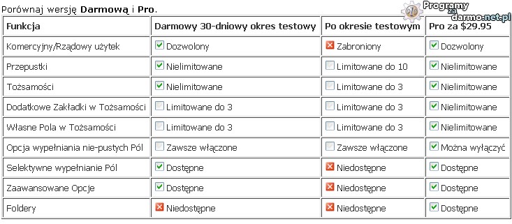 Darmowa ma ograniczenia w ilości zapamiętanych hasel,i tp
