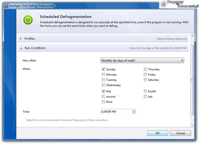 Szeroka gama opcji planowania defragmentacji ułatwia utrzymanie dysku twardego w dobrej kondycji. Możemy szczegółowo określić w jakim dniu i o jakim czasie program ma zostać uruchomiony i przeprowadzić defragmentację, alternatywnie możemy zastosować tryb Auto defragmentacji ( Auto Defragmentation) który w czasie rzeczywistym optymalizuje i defragmentuje dyski wtedy gdy zajdzie potrzeba.Dodatkowo dzięki dowolnie konfigurowalnym opcjom dotyczącym wykorzystania zasobów, każde z zaplanowanych zadań defragmentacji nie będzie nigdy przeszkadzać podczas pracy lub grania w gry na komputerze.