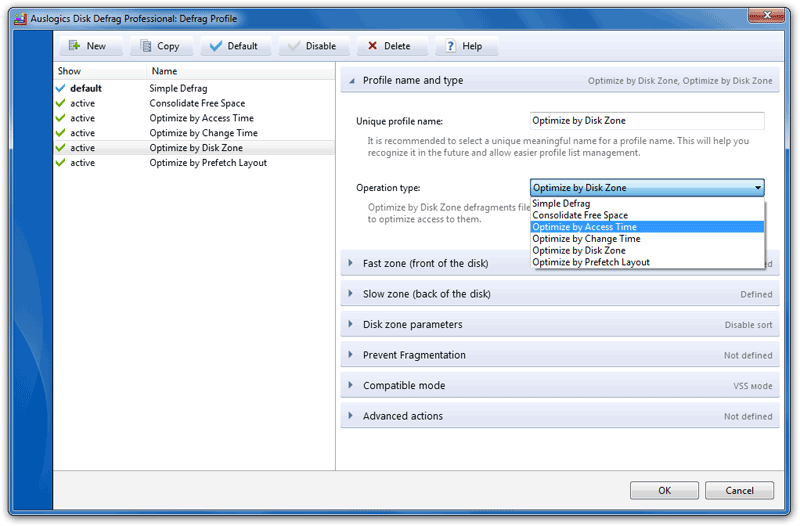 Optimize by Disk Zone – pozwala ręcznie określić jakie typy plików, a nawet poszczególne pliki powinny być zapisane na tzw.szybszej części dysku.