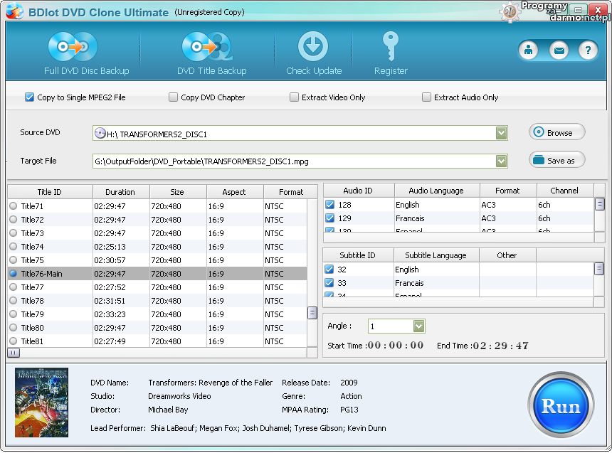 BDlot DVD Clone Ultimate – to proste w obsłudze narzędzie za pomocą którego wykonamy kopie płyt DVD.Program pozwala utworzyć idealną kopię (1:1) na dysku twardym komputera , dysku przenośnym, zapisać do pliku ISO oraz nagrać na nową płytę DVD.
