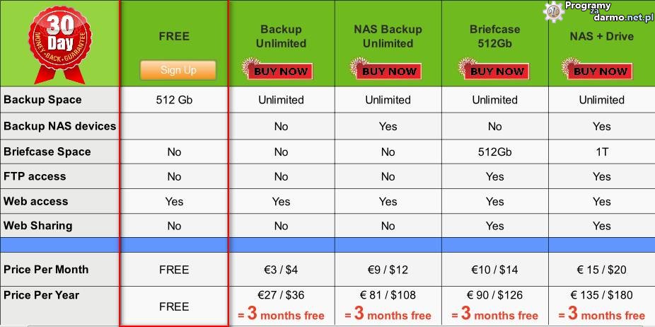 W tej darmowej wersji jest też dostęp do plików poprzez stronkę.