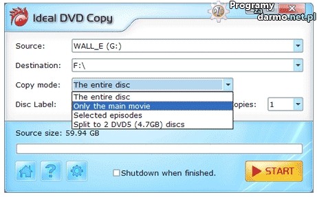 Ideal DVD Copy – to proste w obsłudze narzędzie przeznaczone do tworzenia kopii zapasowych ulubionych płyt DVD.Program pozwala między innymi kopiować płyty DVD a następnie nagrywać je na czyste płyty, kopiować DVD na twardy dysk do folderu oraz obrazu ISO, nagrywać DVD z twardego dysku na czyste płyty, omijać zabezpieczenia płyt DVD i wiele więcej.