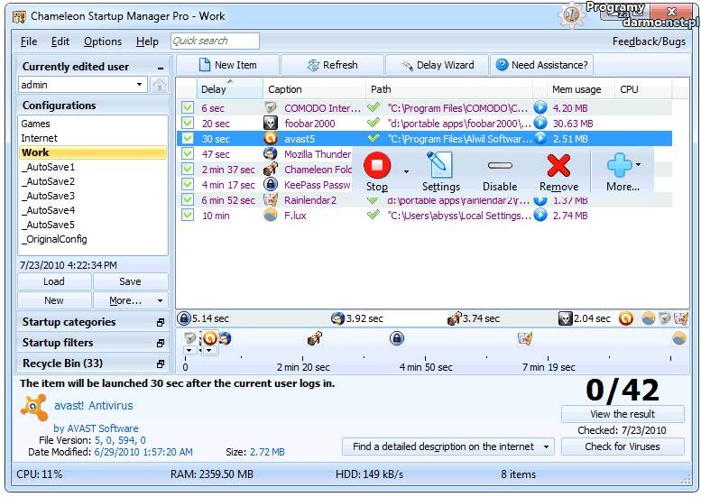 Chameleon Startup Manager to rozbudowany program do zarządzania aplikacjami startującymi wraz z systemem Windows.Za pomocą tego programu możemy kontrolować programy uruchamiane przy starcie systemu Windows, co sprawi że uruchamianie systemu Windows będzie szybsze i stabilniejsze.