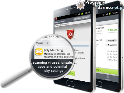 Ochrona antywirusowa i funkcja skanowania na żądanie pomaga chronić twój system Android przed wirusami i niebezpiecznymi aplikacjami.Za pomocą jednego kliknięcia możemy włączyć skanowanie oraz zaplanować skanowania w określonym czasie.Funkcja „Health Check”, szybko identyfikuje wirusy, niebezpieczne aplikacje i potencjalnie niebezpiecznych ustawienia.