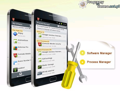 Process Manager to przydatna funkcja wbudowana w Comodo Mobile Security pozwalająca na pełną kontrolę uruchomionych procesów w systemie Android. Możesz zobaczyć ile procesów jest uruchomionych, ile pamięci każdy wykorzystuje i także możesz szybko zamknąć (wyłączyć) wybrane przez siebie procesy. Software Manager pomaga odinstalować lub zabić aplikacje, które mogą powodować spowolnienie działania telefonu.