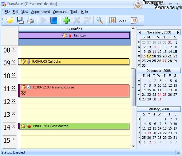 DayMate 6.5 – to prosty w obsłudze, uniwersalny i intuicyjny terminarz (organizer) umożliwiający tworzenie planu zajęć oraz szczegółowego grafiku na najbliższe dni, tygodnie czy miesiące.