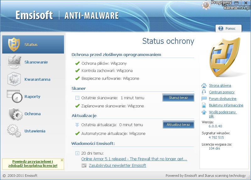 Autor: Konkurs Emsisoft Anti-Malware 6.0 – 5 licencji do wygrania | Programy Za Darmo dnia 22.10.11 o godz. 15:36