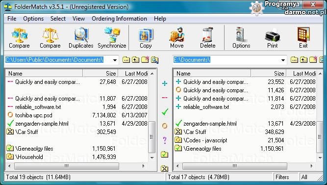 FolderMatch – to program, który porównuje pliki i foldery, pokazując szczegółowo różnice.. FolderMatch umożliwia szybkie i łatwe porównanie i synchronizowanie zawartości dwóch dowolnych plików lub folderów.
