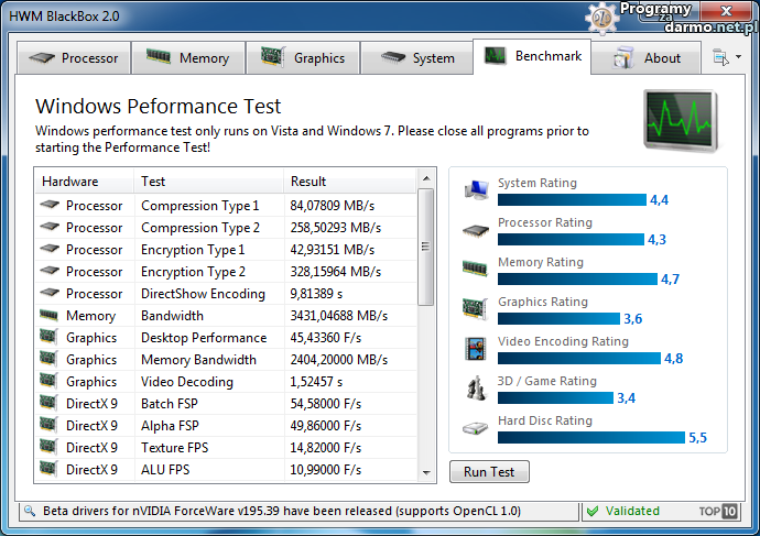 – Benchmark – Test wydajności poszczególnych urządzeń zainstalowanych w komputerze