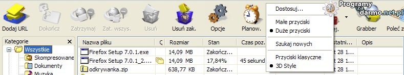 Aby dostosować wygląd paska narzędzi IDM, kliknij prawym przyciskiem na pasku narzędzi (patrz poniżej).