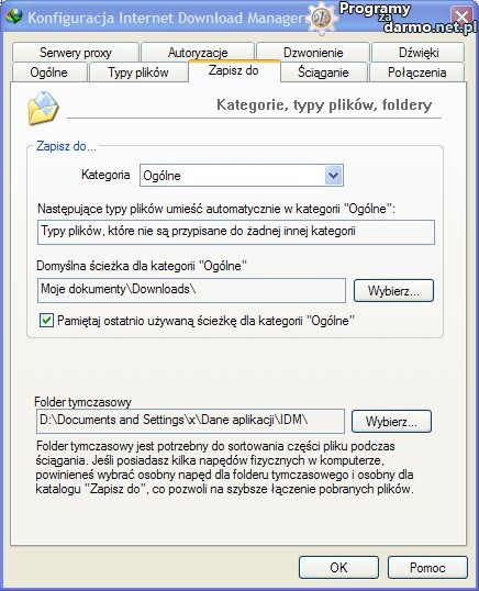 Również można zapisać wszystkie pobrane pliki do folderu związanego z wybranej kategorii. Trzeba będzie wybrać odpowiednią opcję i wybrać kategorię.