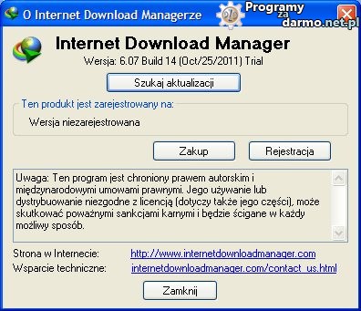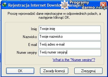 To okno dialogowe mogą być wykorzystane do rejestracji kopii Internet Download Manager.