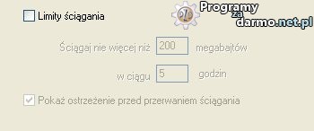 limit szybkości pobieranych plików, bardzo przydatna funkcja gdy nie chcemy „zapchać” łącza internetowego.