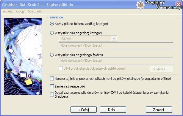 Na zakładce „Zapisz do” można ustawić jakie pliki, mają być pobierane do jakich katalogów i kategorii.