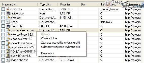 Wszystkie najważniejsze elementy są dostępne również w menu Plik, a także w Menu kontekstowe z prawym przyciskiem myszy na plik do listy plików do pobrania.