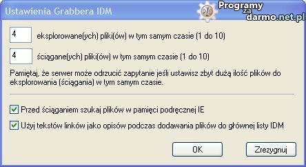 W oknie ustawień Grabbera można określić ile plików mają się pobierać w tym samym czasie.