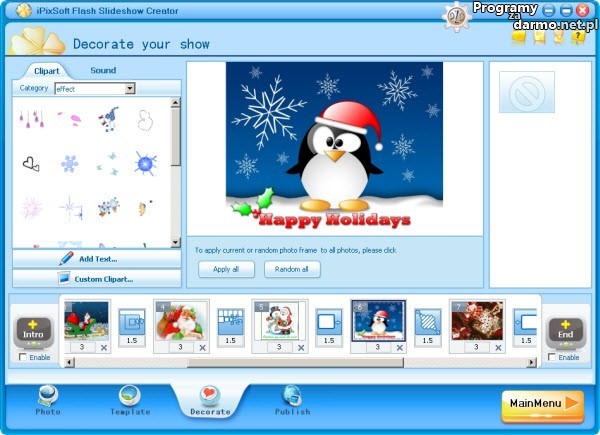 iPixSoft Flash Slideshow Creator to narzędzie przeznaczone do tworzenia pokazów slajdów ze zdjęć w technologii Flash. Program wyposażony został w intuicyjny i prosty w obsłudze wygodny kreator.