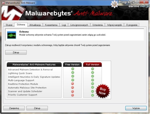 Aktywacja pełnej wersji programu odblokowuje ochronę w czasie rzeczywistym, harmonogram skanowań zaplanowanych oraz harmonogram aktualizacji automatycznych. Koszt licencji dla użytku domowego to jednorazowa opłata w wysokości $24.95 (z podatkiem około 90 zł).