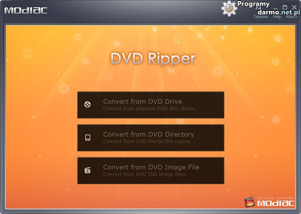 Modiac DVD Ripper – to rozbudowane a zarazem bardzo proste w obsłudze narzędzie przeznaczone do zgrywania ( rippowania ) płyt DVD oraz konwertowania do popularnych formatów audio i wideo, na przykład można zgrać DVD do formatu AVI, WMV, MKV, MP4, FLV itp.