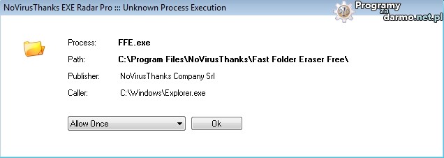 NoVirusThanks EXE Radar Pro – to bardzo przydatne oprogramowanie zabezpieczające dla systemów Windows które ostrzega użytkownika za każdym razem gdy jakiś nieznany proces próbuje się uruchomić w systemie.W momencie wykrycia próby uruchomienia procesu program daje nam możliwość jednorazowego zezwolenia na uruchomienie, jednorazowego zablokowania uruchomienia, zablokowania i usunięcia pliku wykonywalnego , dodania do białej listy ( zaufane programy ) lub dodania do czarnej listy ( procesy blokowane automatycznie za każdym razem gdy będą próbowały się uruchomić ).Czarne i białe listy są bezpiecznie zapisywane na dysku wraz z ich sumą kontrolną MD5.