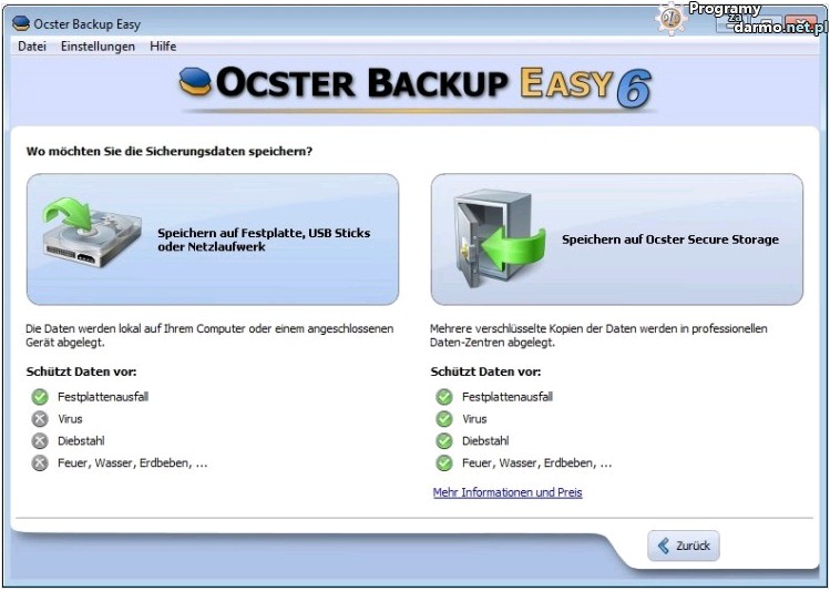 Ocster Backup Easy 6 to w pełni automatyczne narzędzie przeznaczone do wykonywania kopii zapasowych danych a także ich przywracania. Kopie mogą być przechowywane lokalnie, w sieci lub na serwerach FTP.