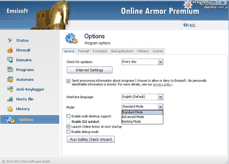 Do cech tych można zaliczyć m. in. trzy tryby pracy Online Armor.