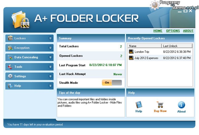 A+ Folder Locker – to narzędzie przeznaczone do ochrony prywatnych danych przed nieautoryzowanym dostępem.Program tworzy tak zwane bezpieczne sejfy w których możemy przechowywać różnego rodzaju pliki i foldery (muzykę, dokumenty, filmy, zdjęcia, programy itp.)