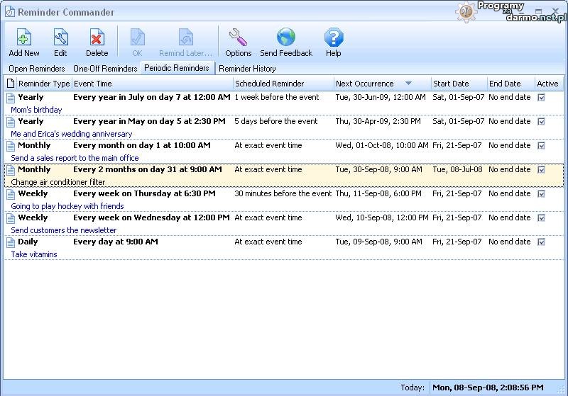 Reminder Commander 4 – to aplikacja dla zapominalskich, której zadaniem jest przypominanie użytkownikowi o ważnych wydarzeniach takich jak urodziny, rocznice, spotkania, ważne telefony i wiele innych.