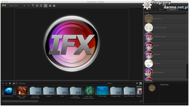 IFX-Supreme – to jak zapewnia producent, program do tworzenia na zdjęciach efektów specjalnych których jeszcze nigdy nie widzieliście.Program daje możliwość łączenia filtrów i narzędzi, w dowolnej kombinacji, aby stworzyć wyjątkowe efekty oraz daje pełną kontrolę i podgląd w czasie rzeczywistym,