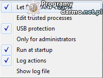 PE Guard 2 zapewnia także ochronę przed infekcją z pamięci przenośnych podłączanych przez złącze USB, blokuje automatycznie uruchamiane pliki po podłączeniu pamięci przenośnej do komputera, pozwala utworzyć tzw.listę zaufanych procesów, „zabijać procesy” , zezwalać tylko na odczyt pliku exe a nie jego modyfikację i wiele więcej 🙂