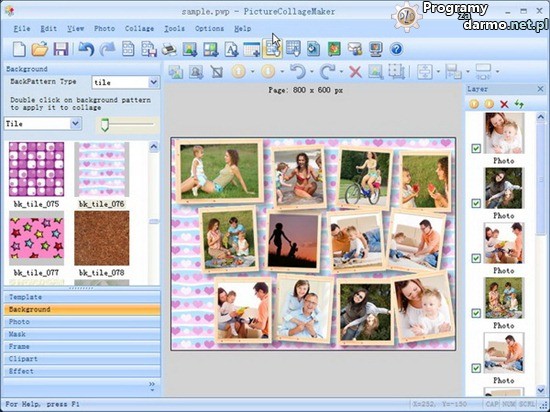 Picture Collage Maker Pro – to program za pomocą którego z łatwością stworzysz kolaże, kalendarze, pocztówki, zaproszenia, plakaty , fotomontaże i kompozycje z kilku zdjęć. Program obsługuję wszystkie popularne formaty graficzne – m.in. JPG, BMP, TIFF, GIF, WMF, TGA, PNG.