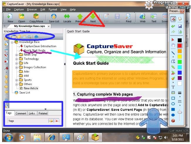Za pomocą tego programu możemy szybko i łatwo wytłumaczyć komuś jak ma wykonać określone operacje na komputerze.W programie znajdziemy narzędzia do tworzenia zrzutów ekranu, zaznaczania, zegar, cyfrowy, lupę powiększającą i wiele więcej.