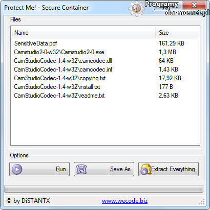 Protect Me! – bezpłatna aplikacja umożliwiająca użytkownikowi zabezpieczanie dowolnych plików i folderów jakie znajdują się na dysku twardym komputera. Protect Me! tworzy specjalny kontener ( w postaci pliku EXE ) do którego użytkownik może dodawać dowolne pliki i foldery. Wszelkie dane umieszczone w takim pliku są chronione przed nieautoryzowanym dostępem innych użytkowników.Program wykorzystuje SHA1 dla walidacji hasła i szyfrowanie AES ( 256 bitowe ).
