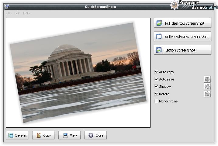 QuickScreenShots – to bezpłatne i bardzo proste w obsłudze narządzie przeznaczone do tworzenia zrzutów ekranu. QuickScreenShots pozwala utworzyć zrzut pełnego okna, aktywnego okna czy wybranego ( zaznaczonego ) regionu.