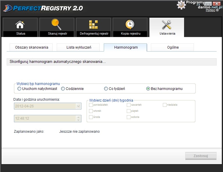 –harmonogram– czyli konfiguracja automatycznego skanowania w określonych interwałach czasowych ( program korzysta z systemowego harmonogramu zadań):