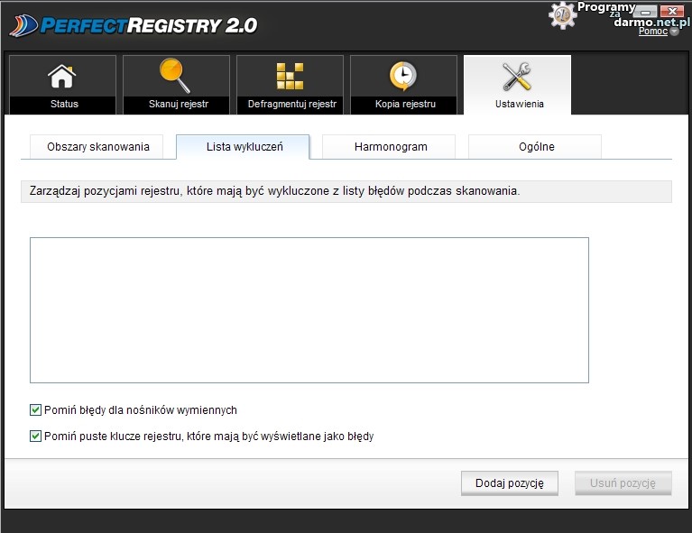 – lista wykluczeń– gdzie możemy dodać pozycję które program kwalifikuje jako błędy, ale my z jakichś powodów chcemy żeby program je pomijał:
