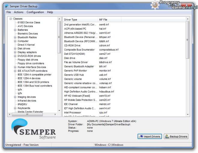 Semper Driver Backup – wyświetla informację w przypadku gdy wystąpił błąd podczas tworzenia kopii/przywracania sterowników, dodatkowo tworzy raport.Może to być pomocne gdy któryś ze sterowników nie został prawidłowo zainstalowany. Po uruchomieniu Semper Driver Backup automatycznie skanuje system w poszukiwaniu dostępnych sterowników i wyświetla listę w łatwym do odczytania formacie.Program pozwala wybrać lokalizację kopii zapasowych sterowników.