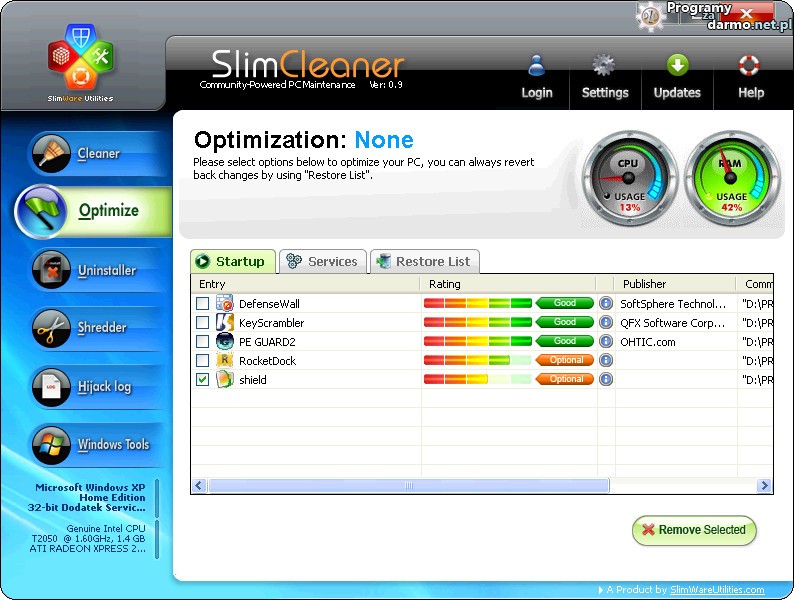 SlimCleaner t0 całkiem nowy i w dodatku darmowy ❗ program do czyszczenia i optymalizacji systemu Windows,program posiada kilka przydatnych narzędzi które pomogą utrzymać nasz system w dobrej kondycji.