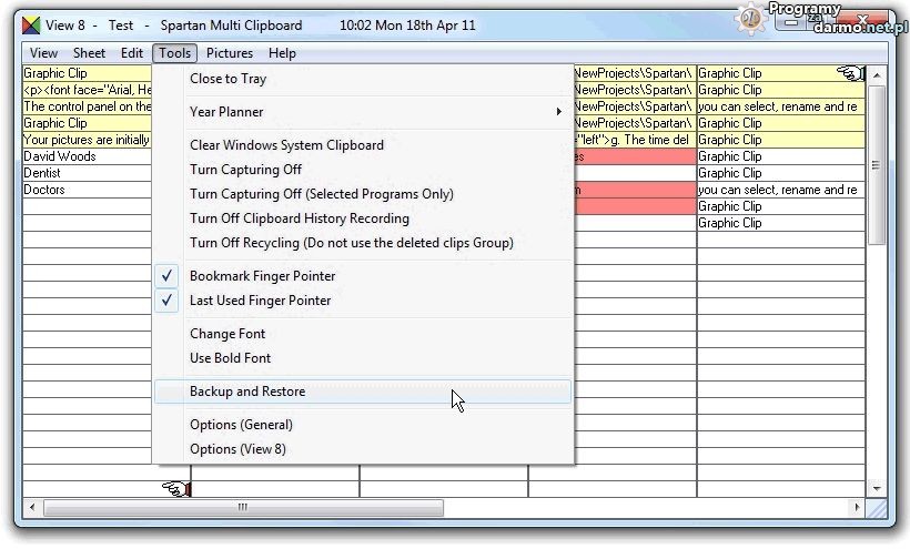 Spartan Clipboard – to tak zwane centrum informacji o twoim komputerze, aplikacja pozwala na przechowywanie i szybkie wyszukiwanie wszelkich informacji które zostały już zrobione, na przykład tekstu wpisywanego w formularzach czy edytorze, otwieranych stronach internetowych, numerach telefonów, przeglądanych zdjęciach, odtwarzanych klipach itp.Spartan Clipboard pozwala zapisać wszystko czego nie musisz pamiętać a następnie szybko to przywołać ( wyszukać )