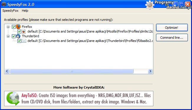 może, może po prostu wskaż gdzie masz profil i zoptymalizuje.Odpalasz spidiego klikasz na SpeedyFox i wybierasz add custom profile i podajesz gdzie masz ten profil.