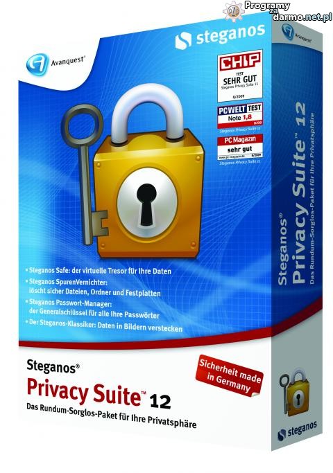 Steganos Privacy Suite 12 – jest to pakiet narzędzi służących do zabezpieczenia i szyfrowanie prywatnych plików i folderów. Program pozwala tworzyć wirtualne bezpieczne dyski o zdefiniowanej pojemności (dostęp do nich możliwy jest jedynie po podaniu hasła), umożliwia szyfrowanie załączników wysyłanych przez pocztę elektroniczną (odbiorca musi znać hasło dostępowe do pliku aby uzyskać do niego dostęp) – E-mail Encryption .