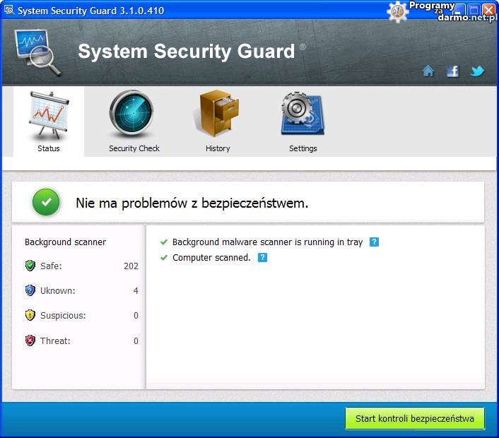 System Security Guard działa na systemach Windows XP,Windows Vista i Windows 7 (32 i 64 bit), można go także używać do zastosowań komercyjnych.
