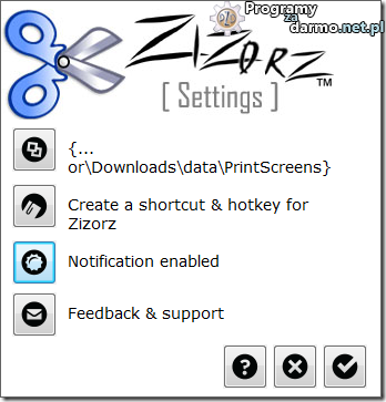 Zizorz – malutkie, bezpłatne narzędzie służące do tworzenia zrzutów ekranu (screenshotów). Program pozwala na przechwytywanie, zapisywanie i wysyłanie utworzonych screenshotów na hosting.Można bezpośrednio przechwytywać wybrany region, aktywne okna, lub po prostu skopiować zaznaczony obszar do schowka, wkleić go do innych aplikacji, takich jak Photoshop, Paint, MS Word, i tym podobne.