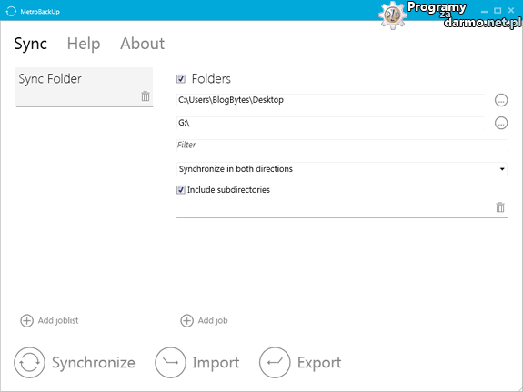 MetroBackUp – proste w obsłudze narzędzie przeznaczone do tworzenia kopii zapasowych oraz synchronizacji plików/folderów.Program pracuje w trzech trybach , pozwala na utworzenie nieograniczonej ilości zadań synchronizacji.